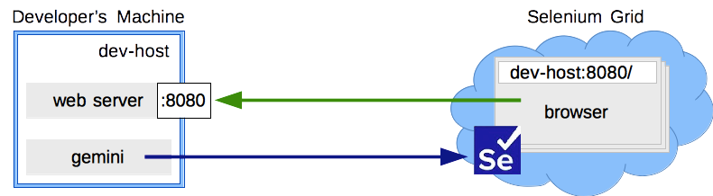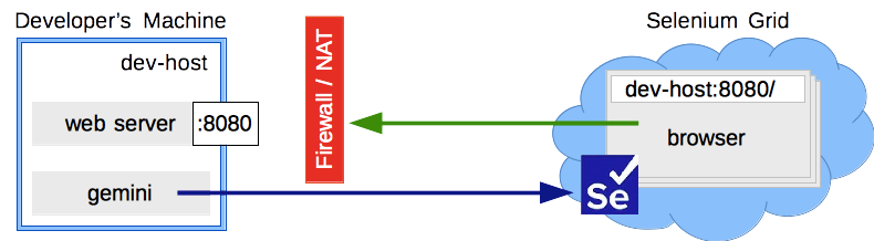 - Браузеру передается хост и порт сервера в качестве хоста тестируемой страницы.